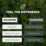 Unlike polyester, which traps heat, retains odors, and feels artificial, wood fibers are breathable, cooling, and odor-neutral. They feel silky soft, wick away moisture quickly, and dry rapidly.